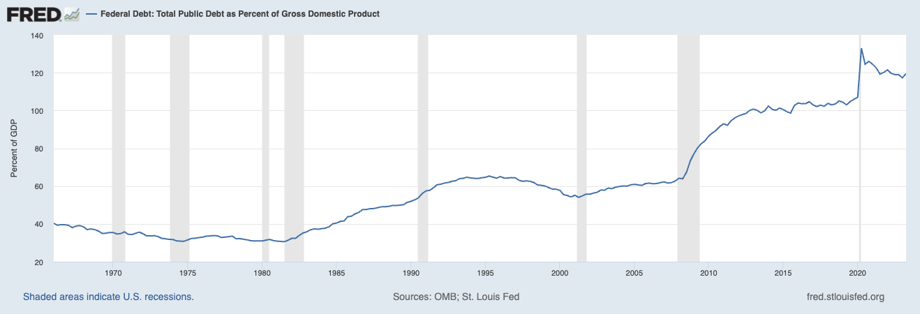 Compounding Problems? Albert Einstein referred to compound interest as the 8th wonder of the world. He went on to state that those who understand it will earn it and those who don't will pay it. Hodlers seem to understand this. A simple Bitcoin buy-and-hold strategy has had a compound annual return of over 30% since 2018. Unfortunately, it appears that our government does not. Debt issuance has continued for the US government even as the FED increased rates in a drastic manner over the last 18 months. The government obviously needs money to keep this country running, but at what point will compound interest be a problem for the US? The US Treasury plans to borrow almost $1.6 trillion through Q4 this year and Q1 2024. This equates to about $800 billion per quarter. While Q3 saw them borrow $1T alone the decrease is far from encouraging. The Fed held rates steady on Wednesday and we seem to be firmly in Higher for Longer territory. So as rates stay high and debt grows, our government finds itself in a precarious position. Rates have been much higher in the past, but US Debt to GDP is at historic levels. So if we aren’t productive enough to pay the interest, where will the money come from? Probably more money printing, which has benefitted crypto participants greatly in the past. It’s almost like the government is telling you to buy Bitcoin.