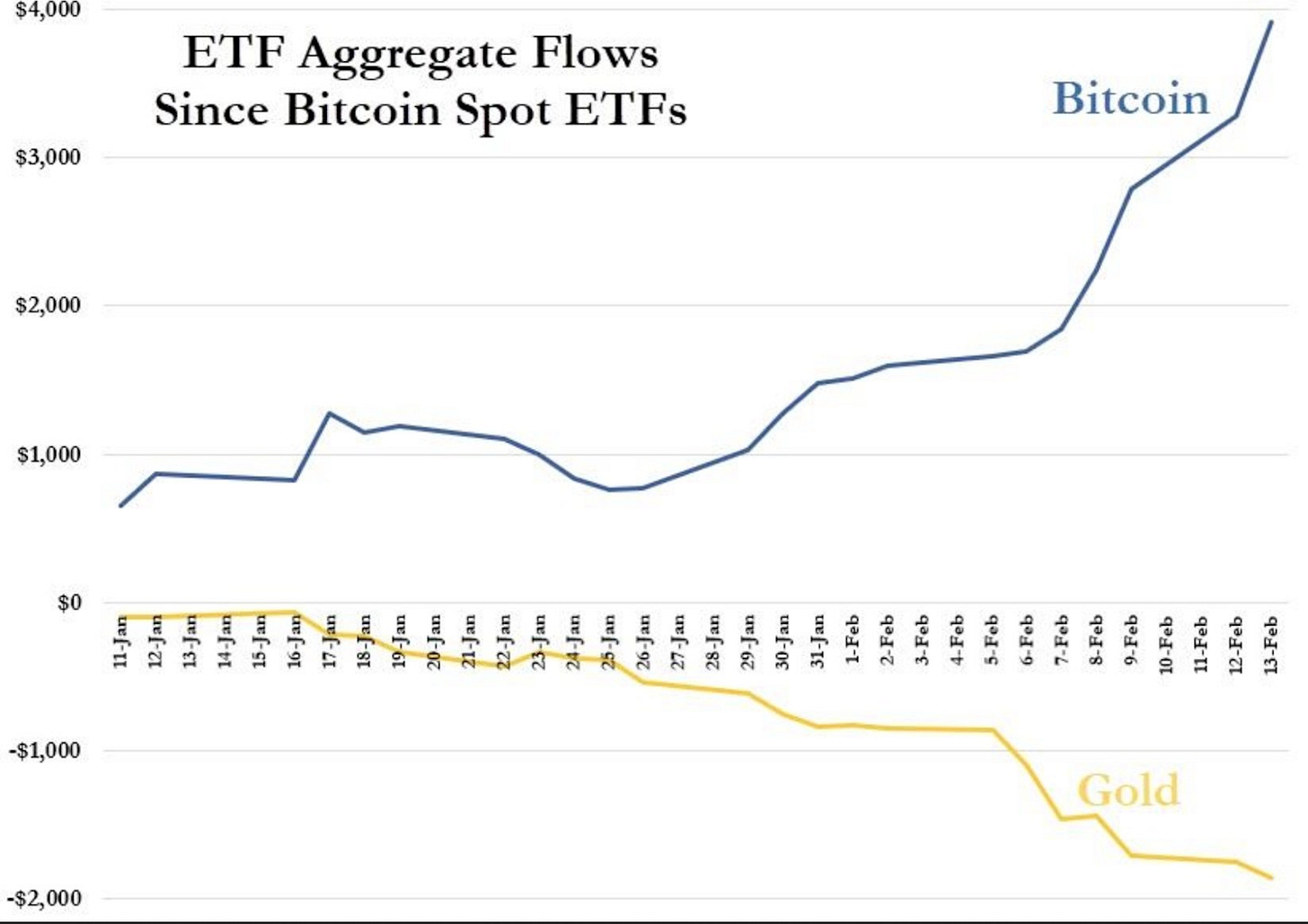 Bitcoin is the New Gold - This is simple. Money is flowing out of Gold and into bitcoin. Take a look at the stark contrast in ETF fund flows, courtesy of Jameson Lopp.
